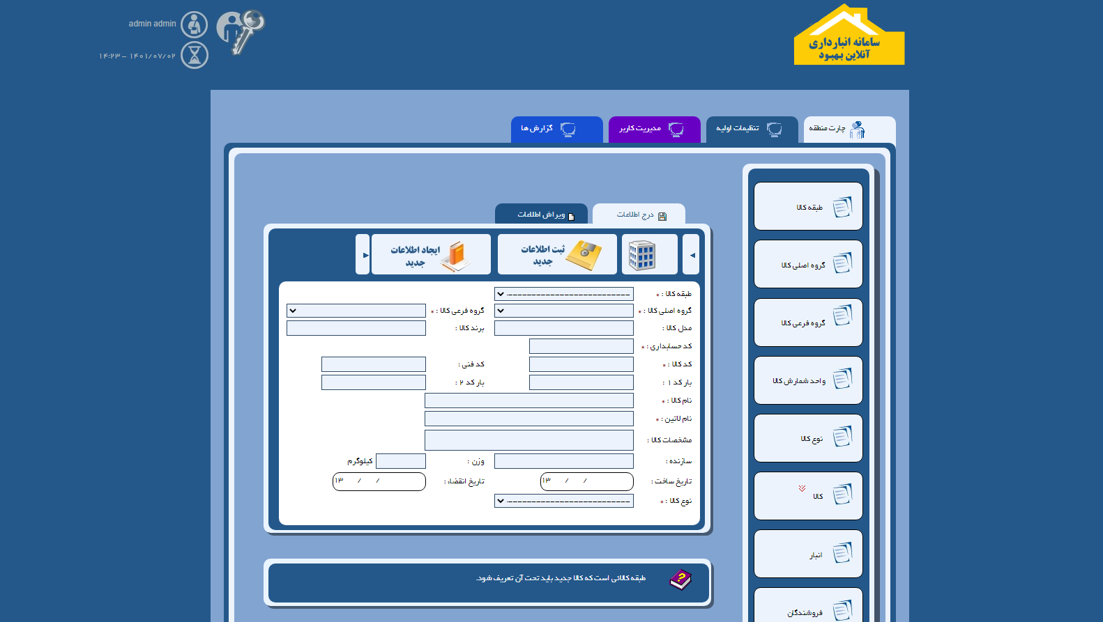امکانات ناحیه مدیریت سامانه انبارداری آنلاین