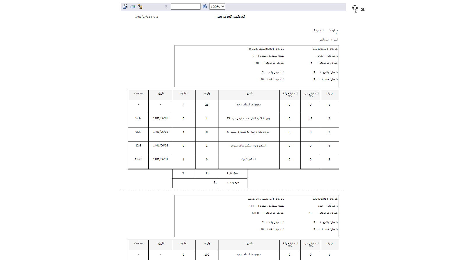 رسید انتقالی بین انبارها
